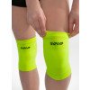 Вязаные наколенники Solo цвета лайм неон с вышивкой черного цвета.