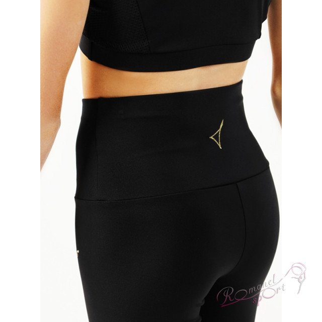 Высокий двойной пояс с эффектом мягкой утяжки, усиленный эластичной тесьмой, обеспечивает надежную фиксацию и комфорт во время тренировок