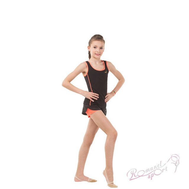 Облегающая майка с закрытыми лопатками для гимнастики и танцев. Основное полотно майки - хлопок 90%, лайкра 10%, боковые вставки выполнены из трикотажной сетки.